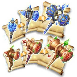 Challenger's Maul Dominator's Mace Tactician's Gavel Frenzy Club Devastating Basher Ruinous Crusher Challenger's Rod Dominator's Wand Tactician's Caster Frenzy Wand Devastating Staff Ruinous Scepter |